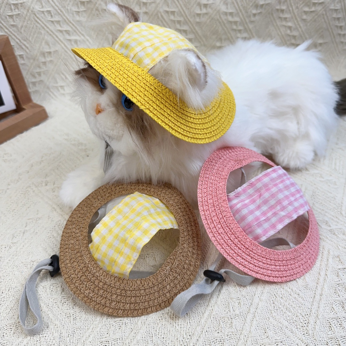 犬用帽子、耳が露出したかわいい猫用夏用日よけ帽子、日よけ帽子、麦わら漁師帽子、ヘルメットカバー、お出かけ用