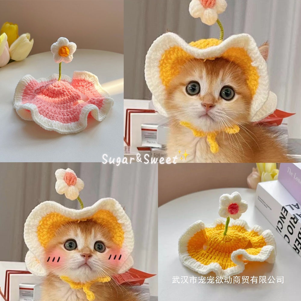 ペット帽子スプリングフィールドフラワーかわいい帽子猫ヘッドギア犬帽子手織り装飾英国ショートヘア猫