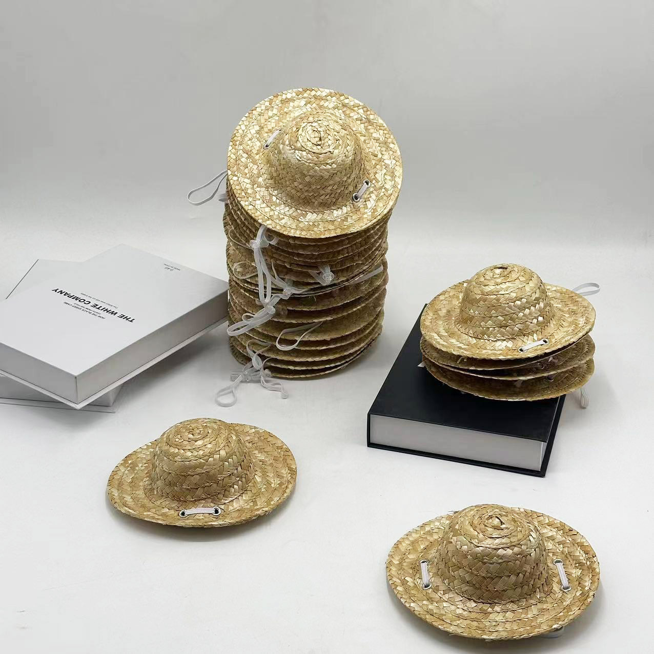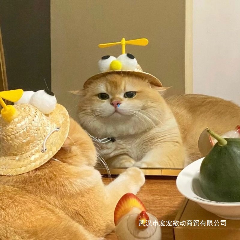 ペット用編み麦わら帽子、猫用ヘッドギア、犬用帽子、小型犬用かわいい竹トンボ、ネット有名人、面白いミニ麦わら帽子