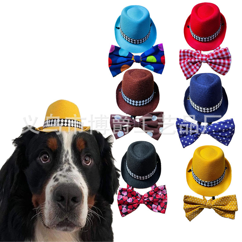 ペット犬カウボーイハット猫帽子パーティーホリデーデコレーション帽子蝶ネクタイセットペット帽子蝶ネクタイ装飾