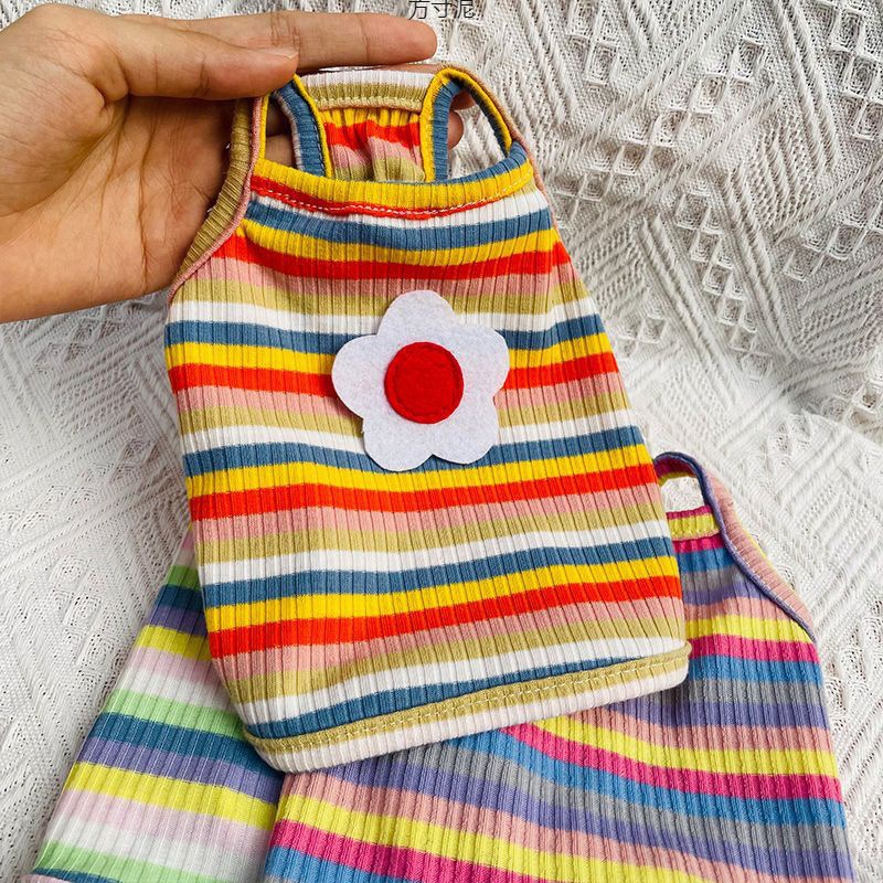 縦縞蝶スカートペット猫犬春夏薄手フレンチドゥコーギーテディポメラニアン服春工場