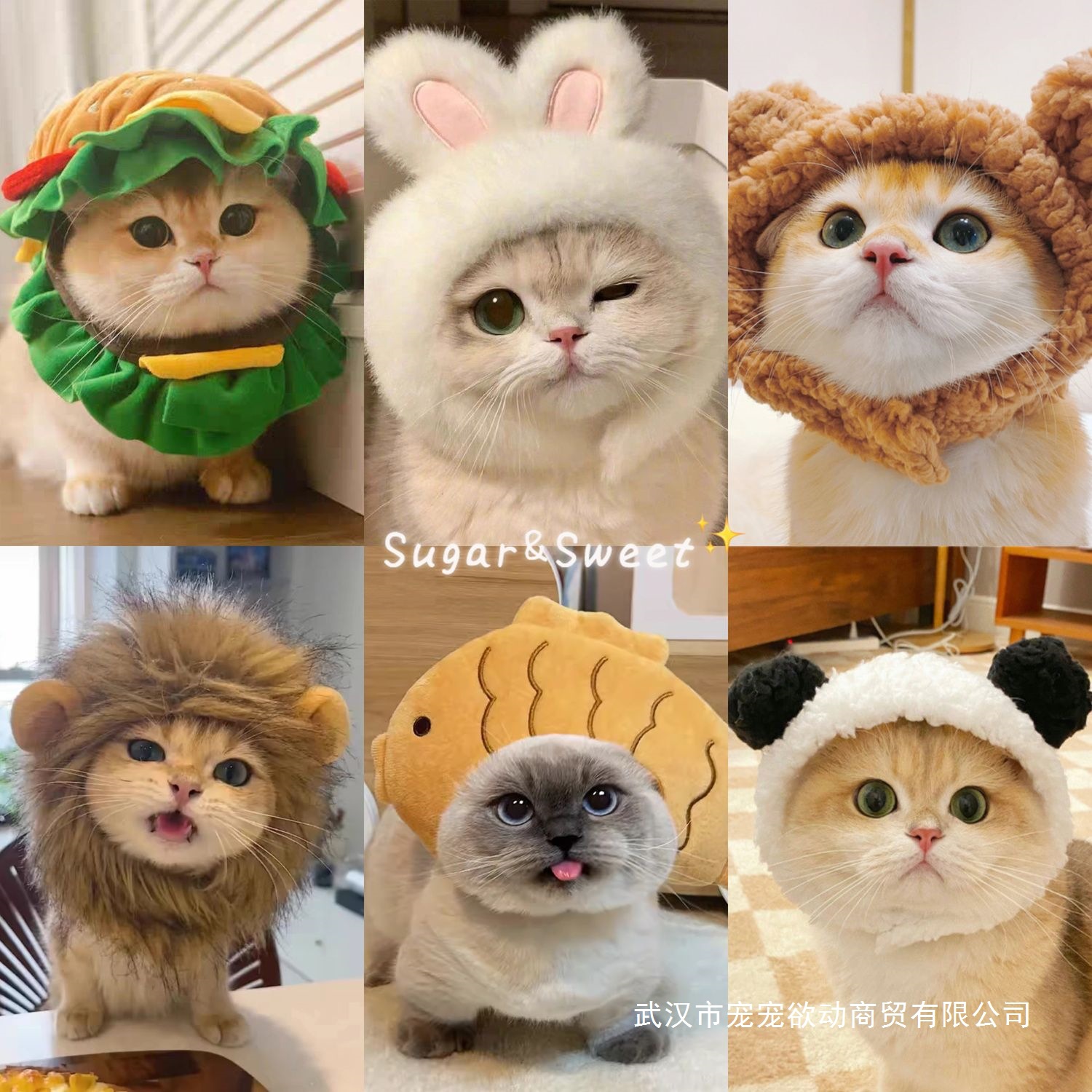 ペットの猫と犬、インターネット有名人のウサギの耳、ライオンのヘッドギア、ウサギの猫の帽子、かわいいハンバーガーの帽子の装飾