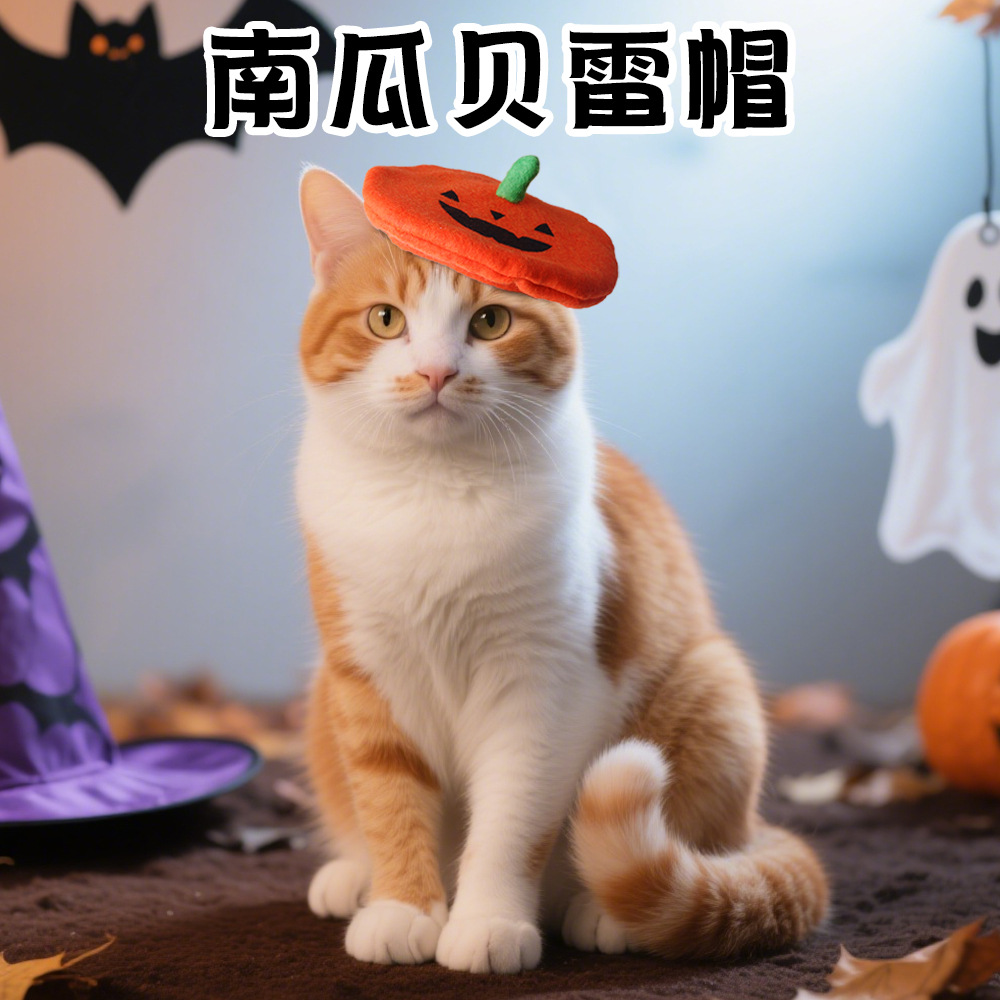 ハロウィンペットベレー帽ドレスアップカボチャスタイル面白いハロウィン猫写真帽子ハロウィン雰囲気ドレスアップ