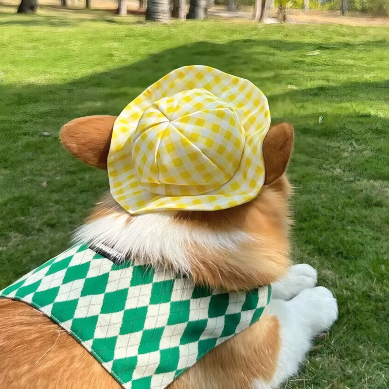 春夏用猫犬用日よけ帽子、耳が見える無毛猫用ヘッドギア、市松模様ペット用フィッシャーマンハット、ヘッドウェア、プリンセス