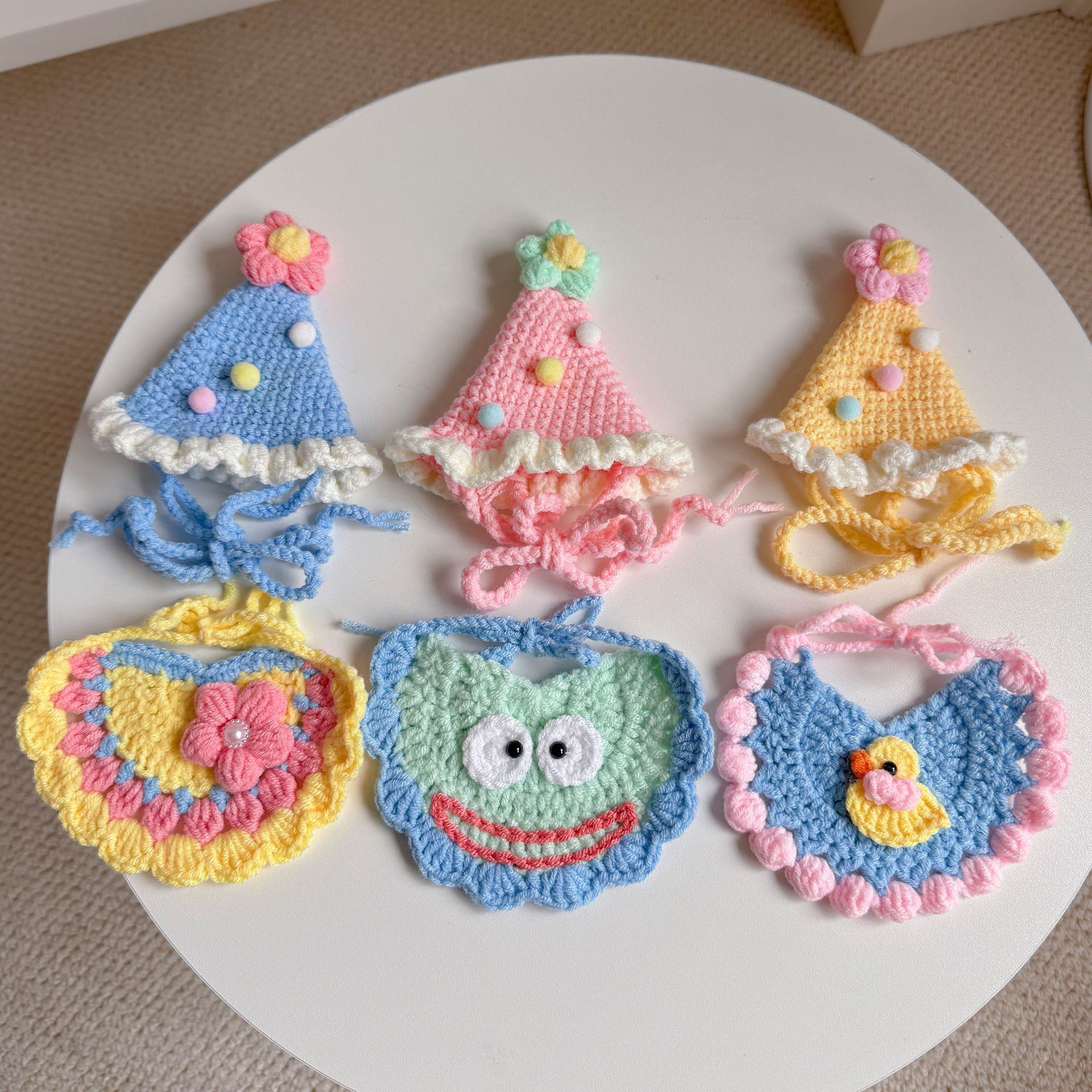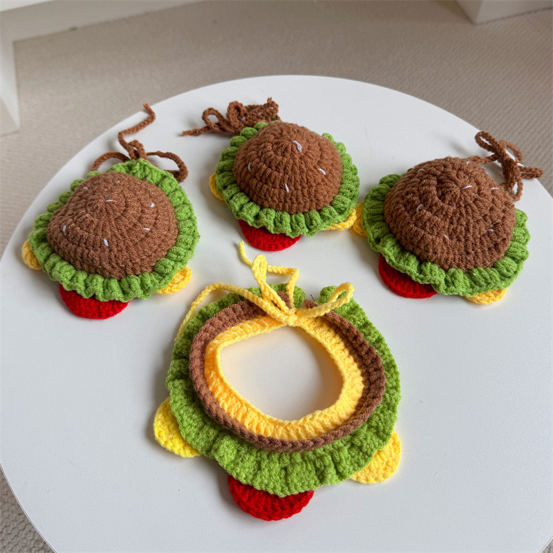 猫ウールスカーフ、ニット首輪、唾液タオル、よだれかけ、犬人形、ハンバーガー帽子よだれかけ