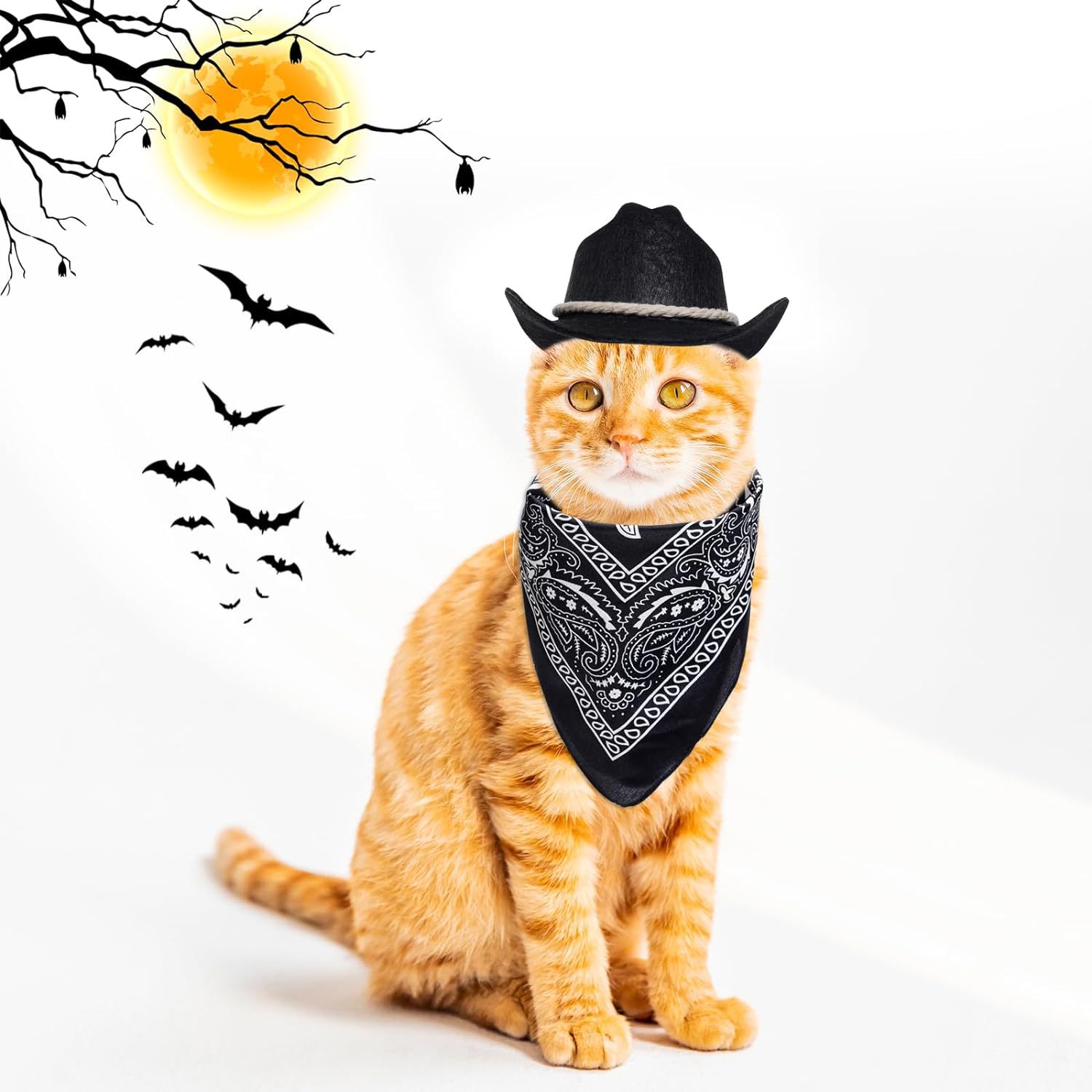 黒ペットカウボーイ帽子唾液タオルセット綿ひもカウボーイ帽子角巾猫犬パーティー祭り帽子