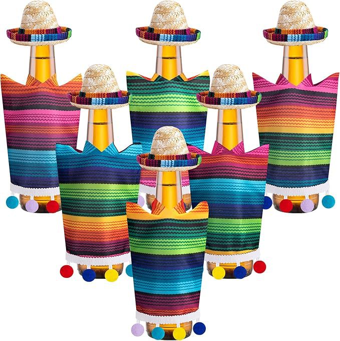 酒瓶小メキシコ麦わら帽子ミニ小ペット帽子パーティー装飾小麦わら帽子酒瓶帽子マフラーセット