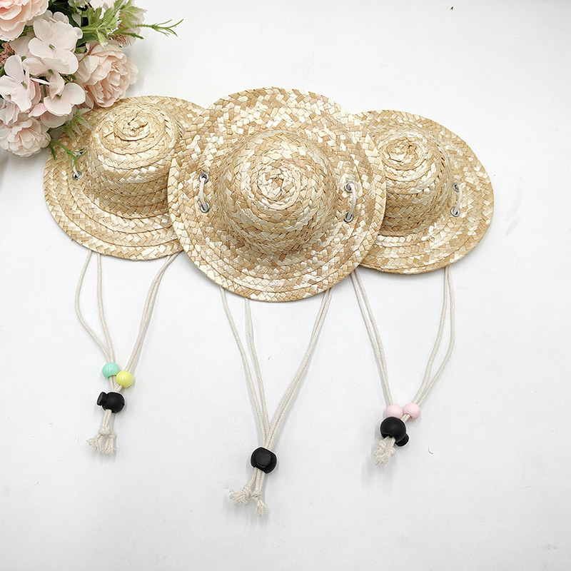 ペット麦わら帽子春と夏の麦わら織りミニ麦わら帽子レトロ農家調節可能な落書き DIY 装飾麦わら帽子