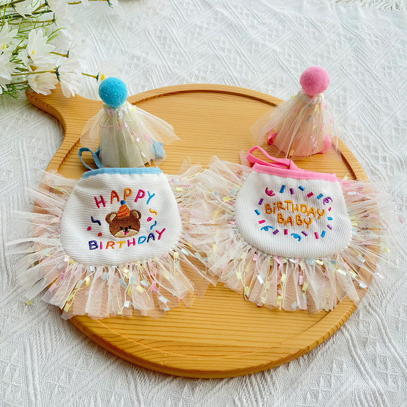 犬の誕生日デコレーションセットペットパーティー誕生日帽子猫ドレスアップよだれかけヘッドバンド刺繍タッセル