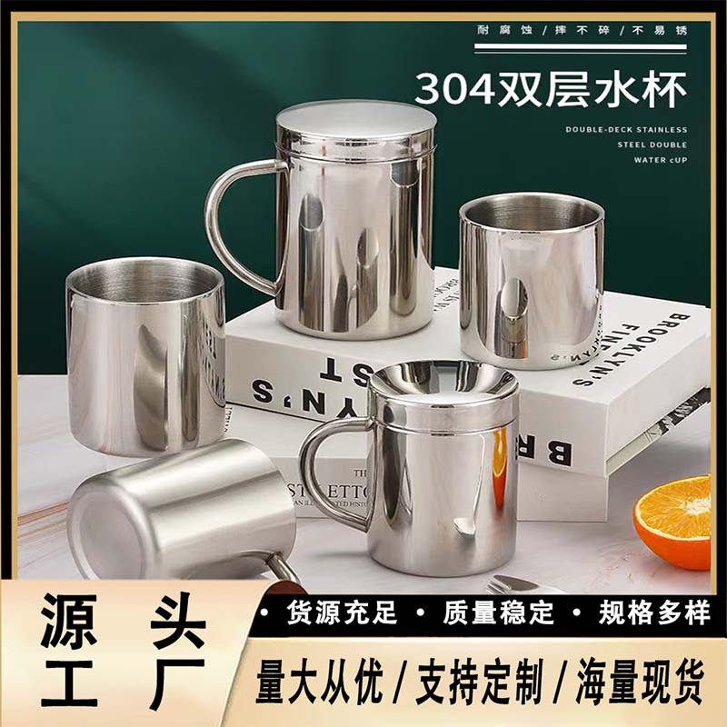韓国式304ステンレス二重水杯レストランビールカップカップ飲料カップホテル飲食転倒防止カップ