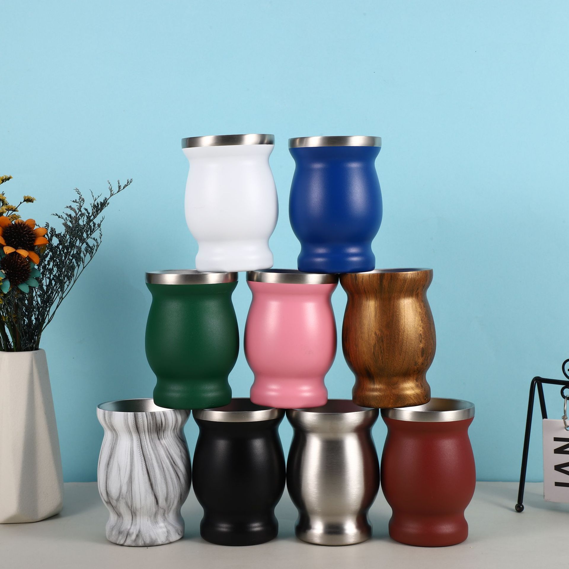 アマゾン8オンス延馬黛杯ステンレス葫芦形ティーカップ断熱付ステンレススプーンストローブラシ