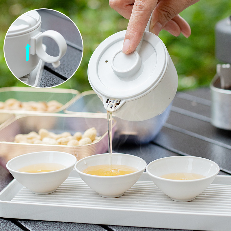 トラベルティーセット、アウトドアポータブルキャンプティードリンク用品、セラミッククイックカップ、オフィスカンフーティーポット