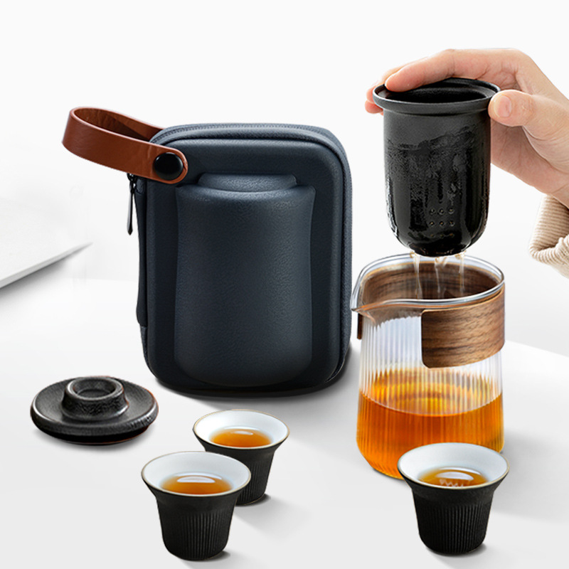 ガラス工夫旅行茶器セット家庭用携帯ティーポット