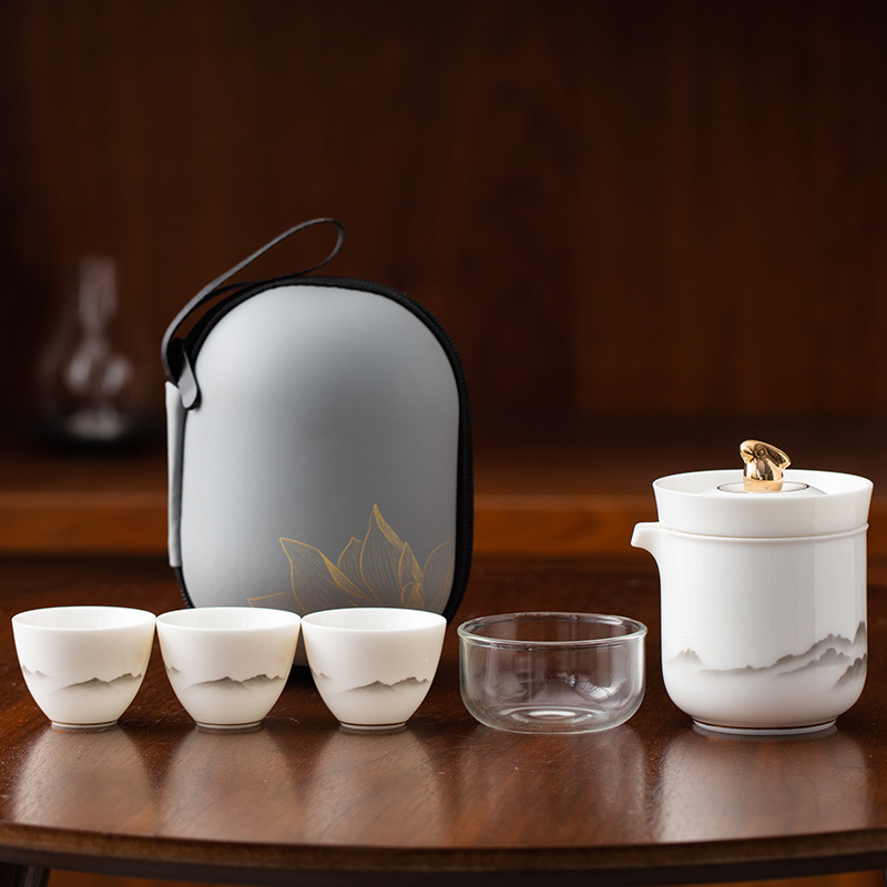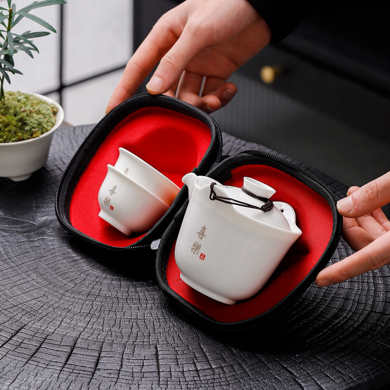 蘇氏陶磁器国潮海水江キャリア羊脂玉カンフー旅行茶器携帯型快客杯屋外ハンドバッグ