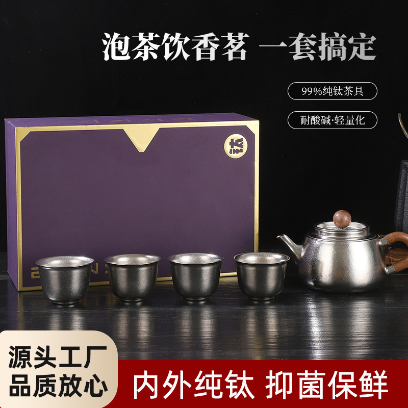 チタン合金携帯旅行茶器セットティーポット二重カップ屋外キャンプお茶セット卸売り