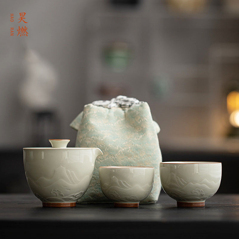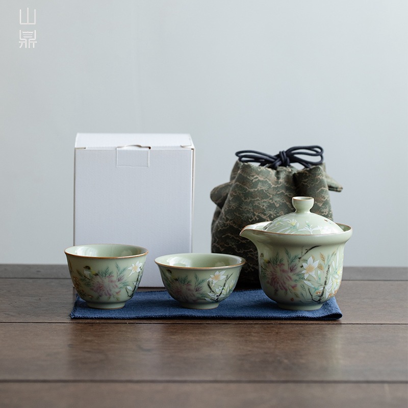 越窯青磁快客杯携帯型一人旅行茶器セット屋外キャンプ旅行泡茶一瓶一杯