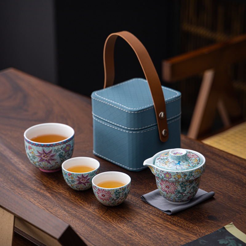 エナメル旅行茶器セット陶磁器快客杯携帯型茶器ビジネスイベントプレゼント一本二杯