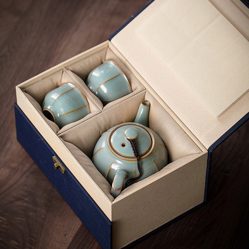 天青汝窯一壺二杯のギフトボックス二人のティーセット