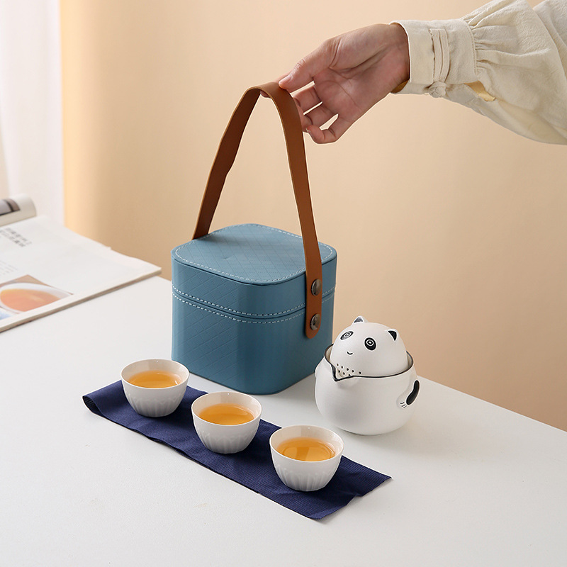クリエイティブパンダトラベルカーティーセットポータブルクイックセラミック3カップかわいいギフトボックス会社ビジネスギフト