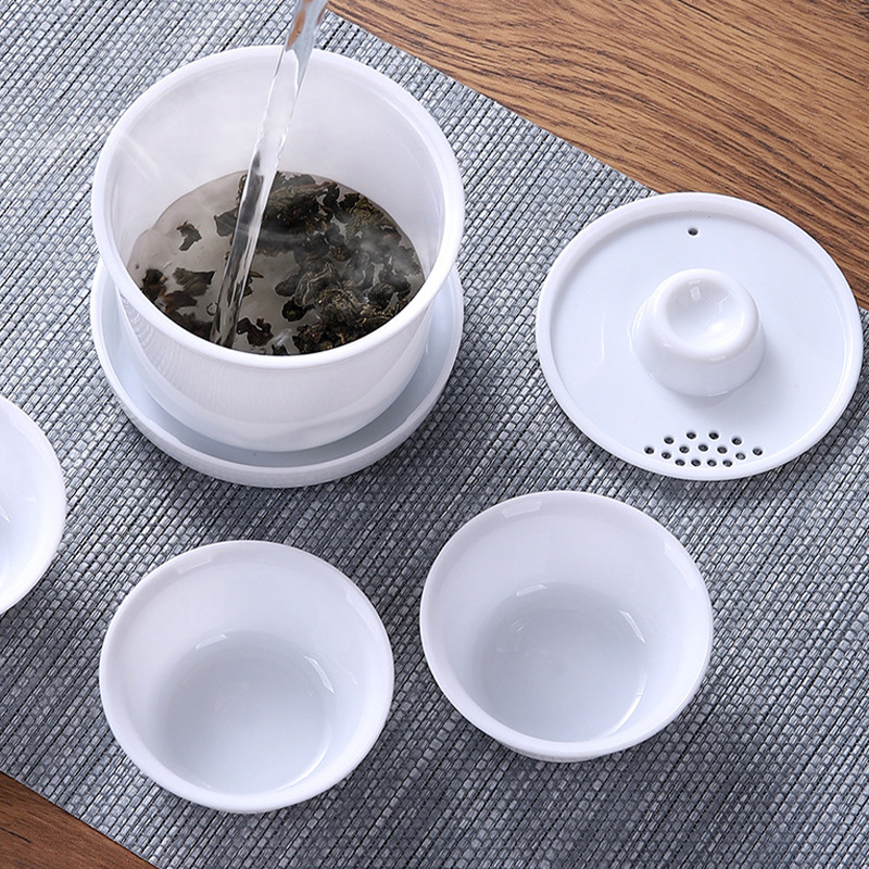 羊脂玉白磁蓋碗旅行茶器セットカンフー茶器一壺六杯活動ビジネスプレゼントセット