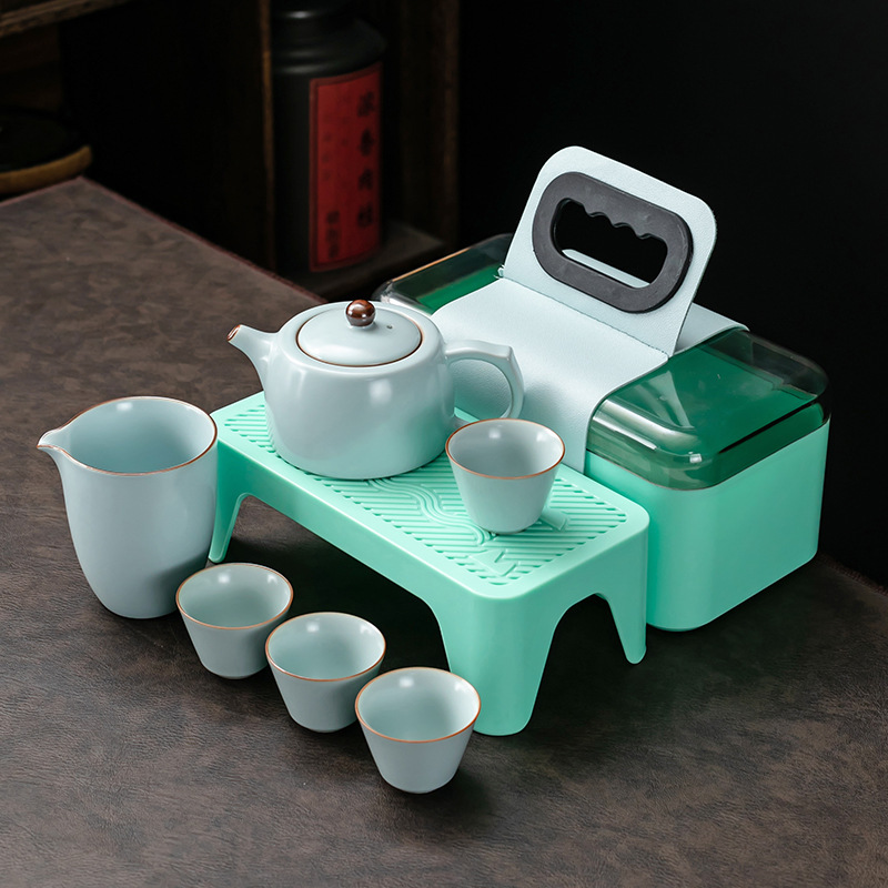 兄窯開片陶磁器屋外携帯型工夫旅行茶器ギフトボックスセット茶盤セットビジネスプレゼント