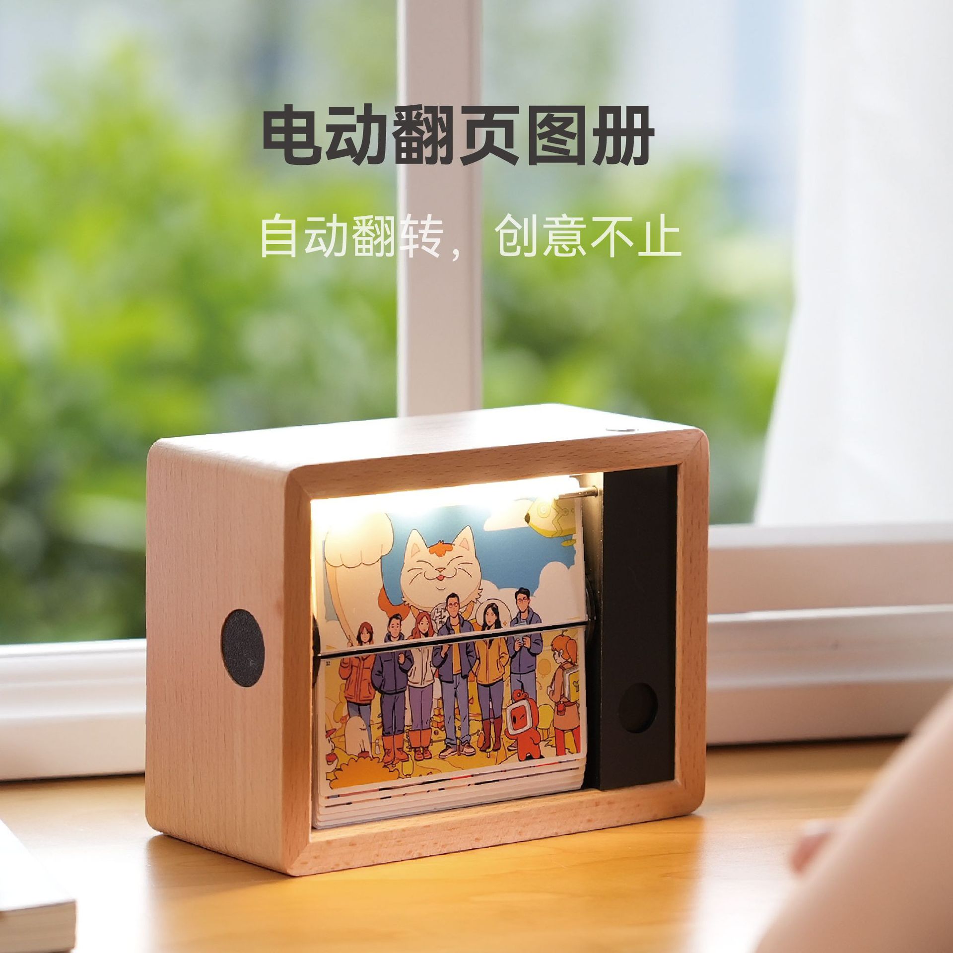 電動ページめくりフォトアルバム、家族カップル、親子ペット写真、カスタマイズされた無垢材ブナ材ギフトフリップ写真装飾品