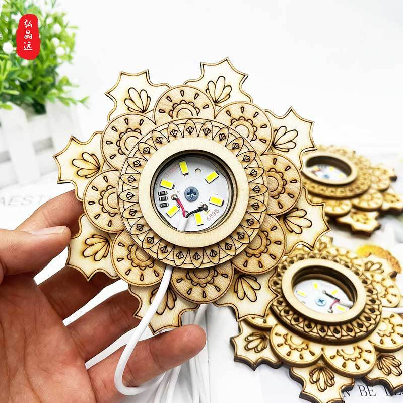 正方形の厚い実木拡散発光diy小夜灯水晶創意台座LED灯座置物電池モデル