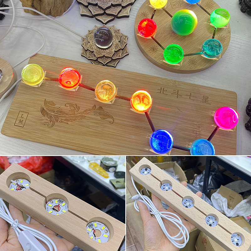 実木水晶球北斗七星発光ベースled実木usb七灯ベース振り子白色光カラー光