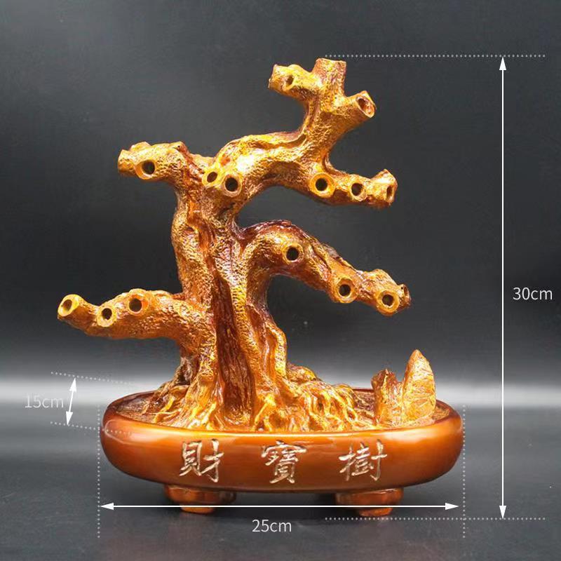 金色の金持ちの木の工芸品の置物の底に座ってdiyの手で玉の髄の結晶の宝石を刺して玉を散らして財産の木の托を招きます。