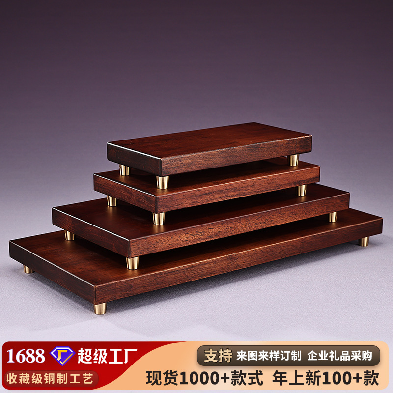 模造クルミ材ベース付き新しい中国風の装飾品長方形無垢材銅ベース工芸品ベース