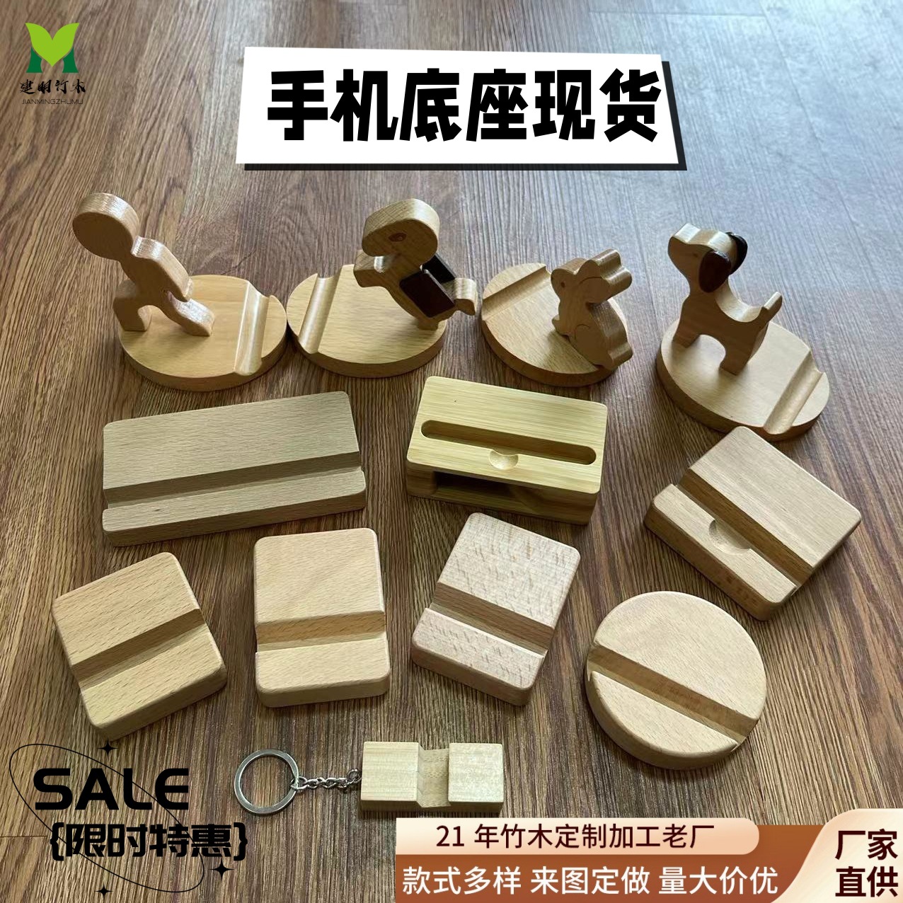 現物ケヤキ携帯電話台座黒胡桃怠け者デスクトップ竹スタンド円形動物漫画実木台座