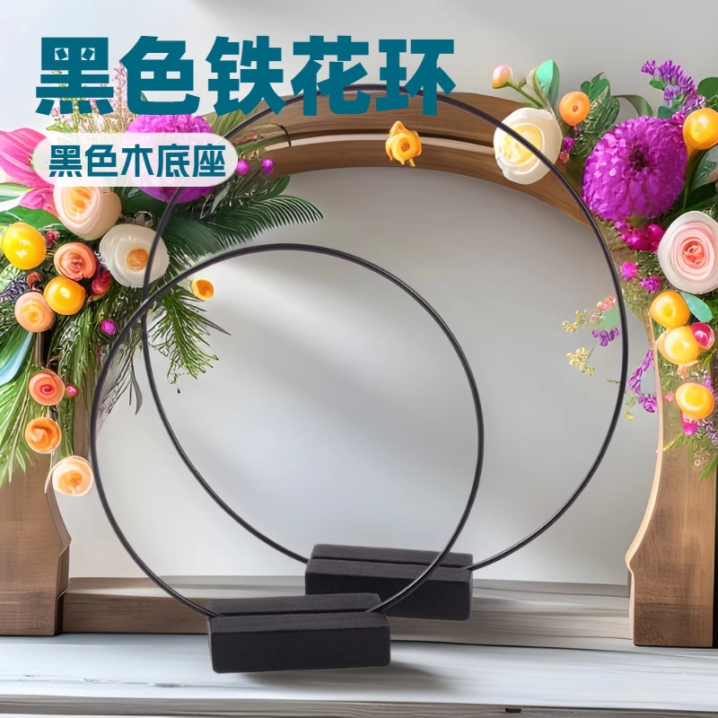 DIY黒い木の台座の花輪鉄の輪は夢のネットの黒い鉄の輪の食卓を捕ってクリスマスの結婚式の装飾を飾ります。