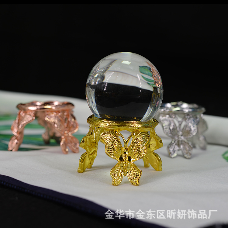 蝶の合金の金属の水晶のボールの台座は玉の鉱の標準の球形の物置の金属の創意の工芸の台座を並べます。