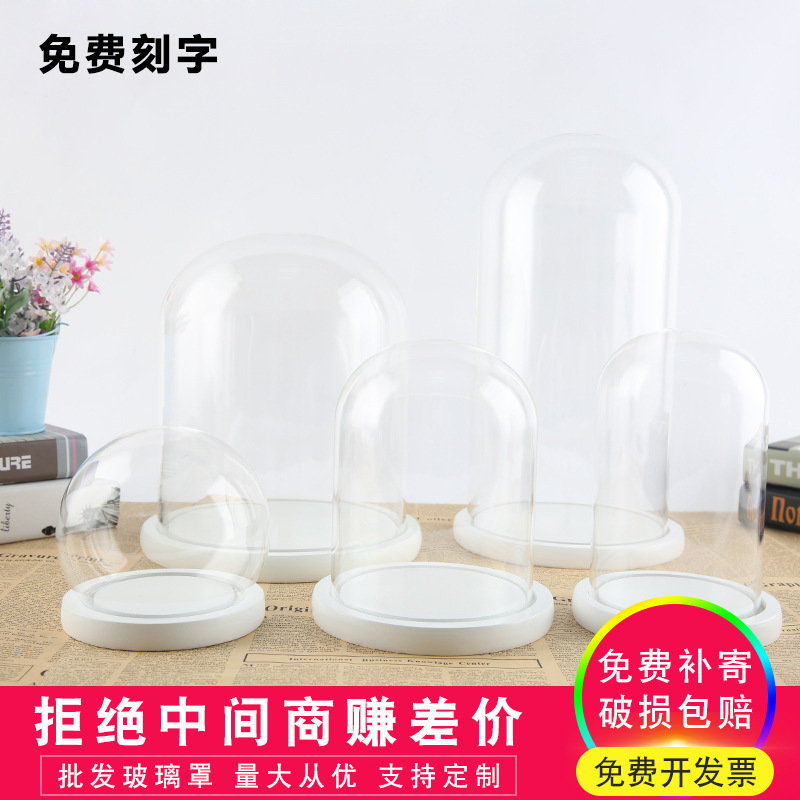 メーカー卸売り白黒ベースガラスカバー創意家庭装飾品創意プレゼント永生花透明防塵カバー