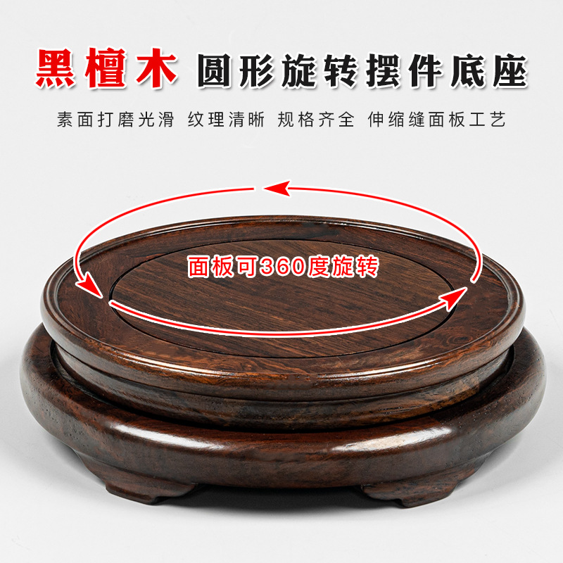 黒檀の丸い素顔の回転ベース花瓶盆栽香炉仏像ティーポット石置物工芸品ベース