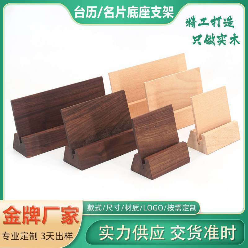 ケヤキの卓上カレンダーの台座の実木カレンダーは背板の卓上カレンダーの棚の創意の胡桃木の明片の会議の札の置物の台座を持ちます。
