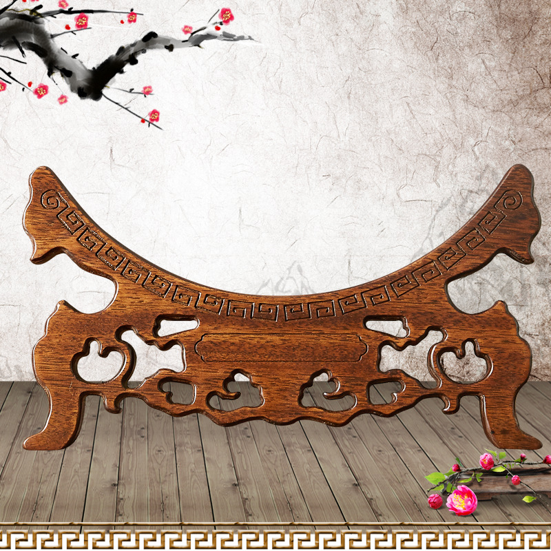 皿のスタンドの磁器の皿のブラケットの装飾画のプーアル茶の餅の棚の皿の展示棚の置物は木の台座に似せます。