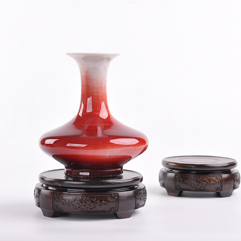 海馬のいくつかの小さい花の棚の赤い木の台の鶏の羽の木の正方形の台の花瓶の盆栽の珍しい玉の小さい置物の台