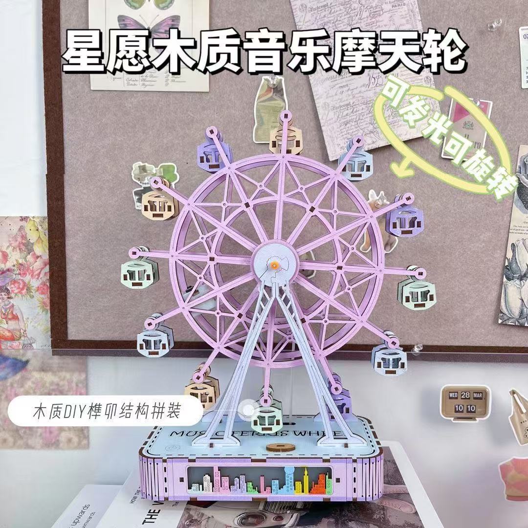 観覧車パズル 3D 立体ビルディングブロックモデル子供のおもちゃの装飾品オルゴール回転 diy 手作りギフト