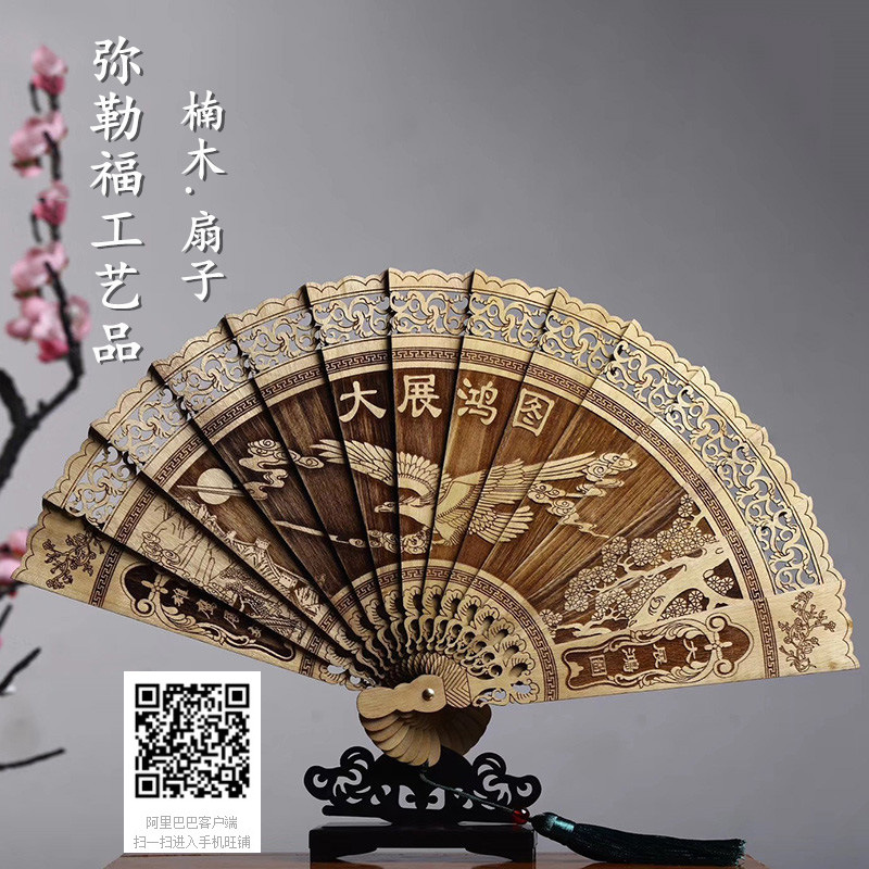 金糸楠木扇子孔雀羽羽扇透かし彫り彫刻古典中国風折り畳み装飾品中国式装飾品