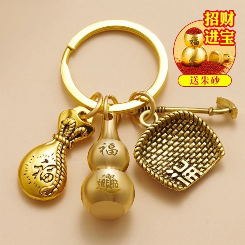 純真鍮手作り中国風キーホルダー辰砂ひょうたん金で満たされた富を引き寄せる干支ペンダント