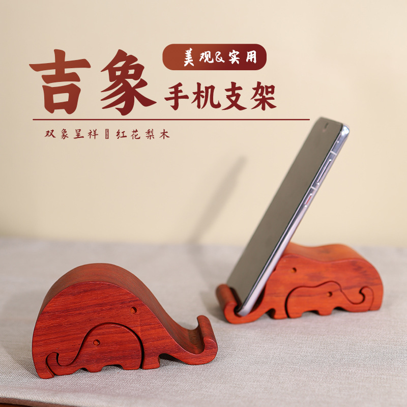 赤い花梨の木の小さい象の携帯電話の支えの実木の厚いデスクトップの怠け者の置物のアイデアは取り外し可能で多機能の置物です。