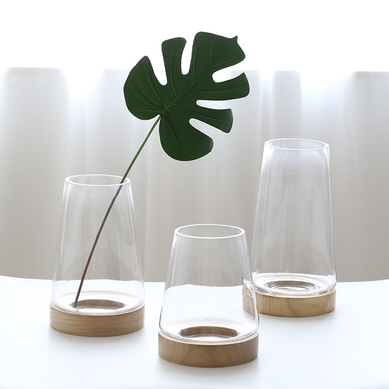 北欧ガラス花瓶実木ベース個性乾花器水培ホテルロビー結婚祝い見本室ソフト装飾品