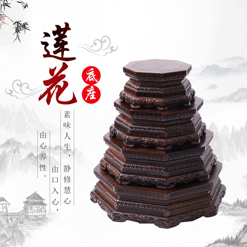 アフリカ黒檀八角蓮の台座実木置物台座工芸品仏像蓮の台座玉器台座
