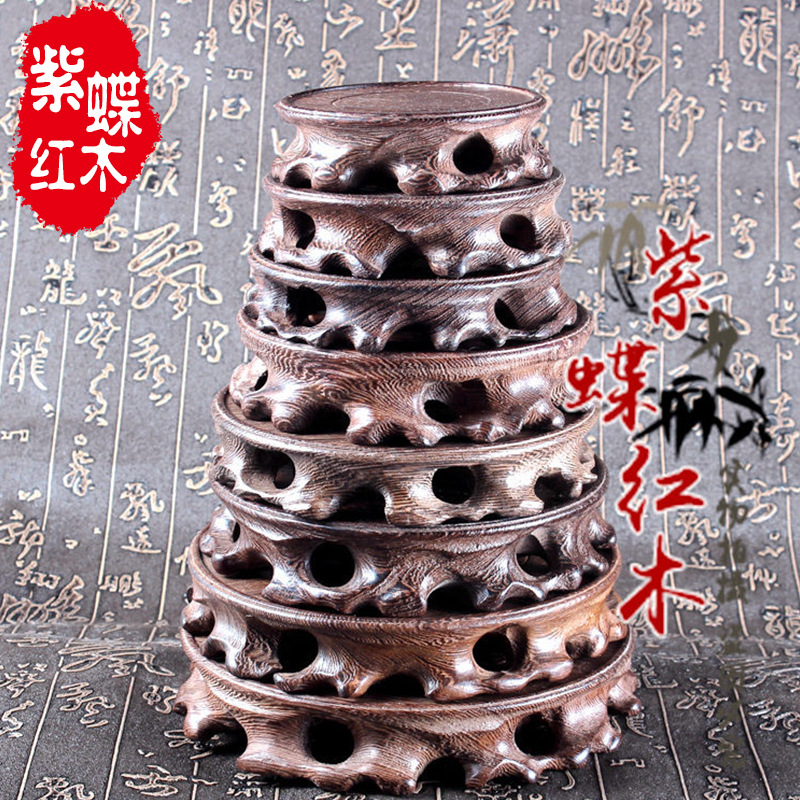 マホガニー工芸品ラウンドベース無垢材ベース彫刻仏像奇妙な石紫砂壺花瓶水槽装飾品ベース