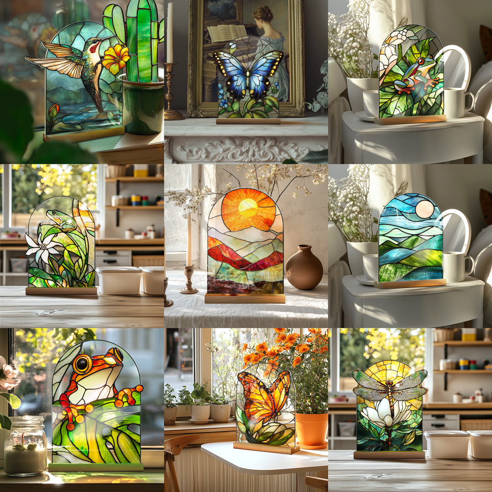 BTU447-494の植物の花の風景は台を並べてガラスの質感のアクリルをまねて台のデスクトップの装飾の置物を並べます。