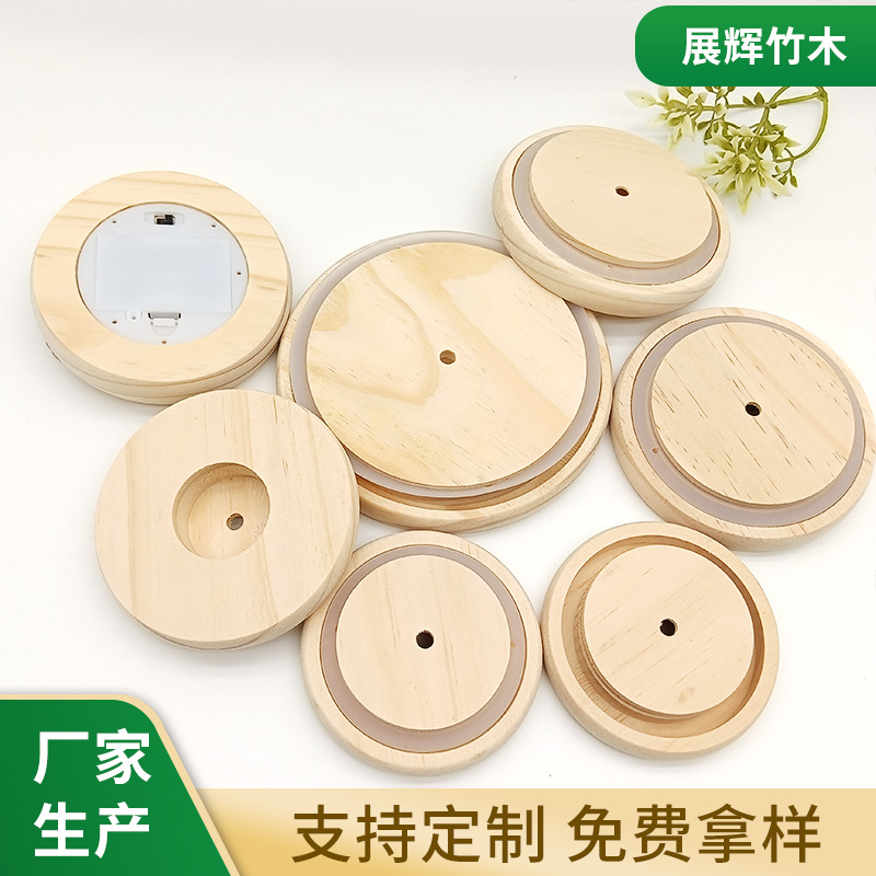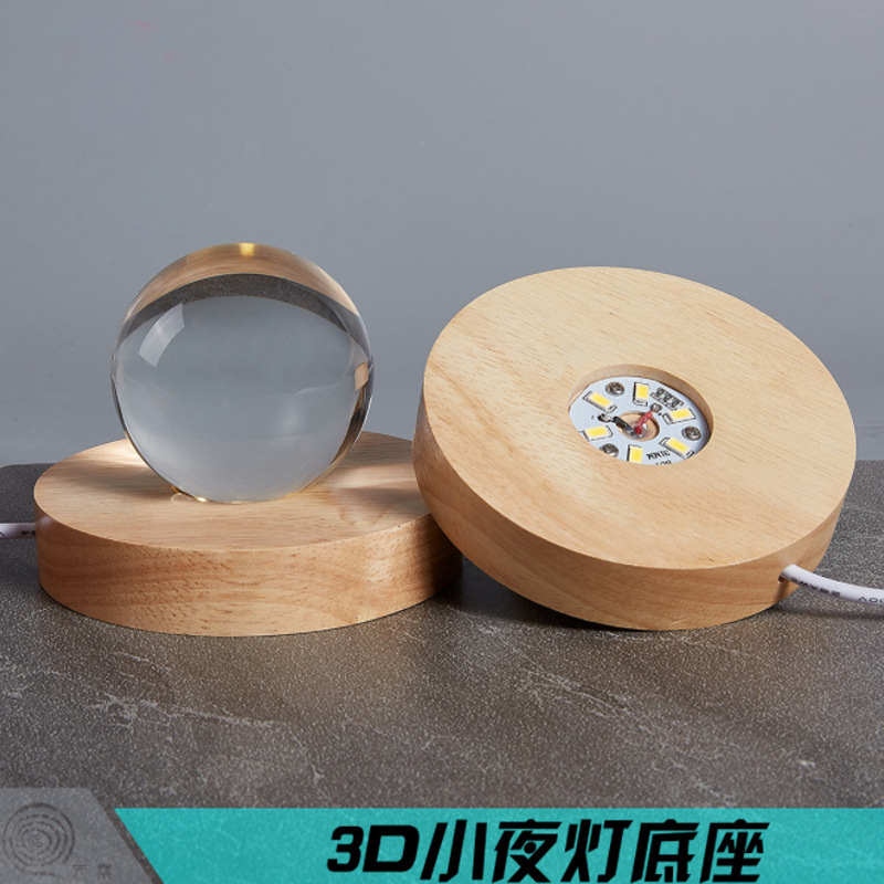 実木発光水晶ベースusbインターフェイス5vスイッチ木質発光ベース小夜灯実木円形ソケット
