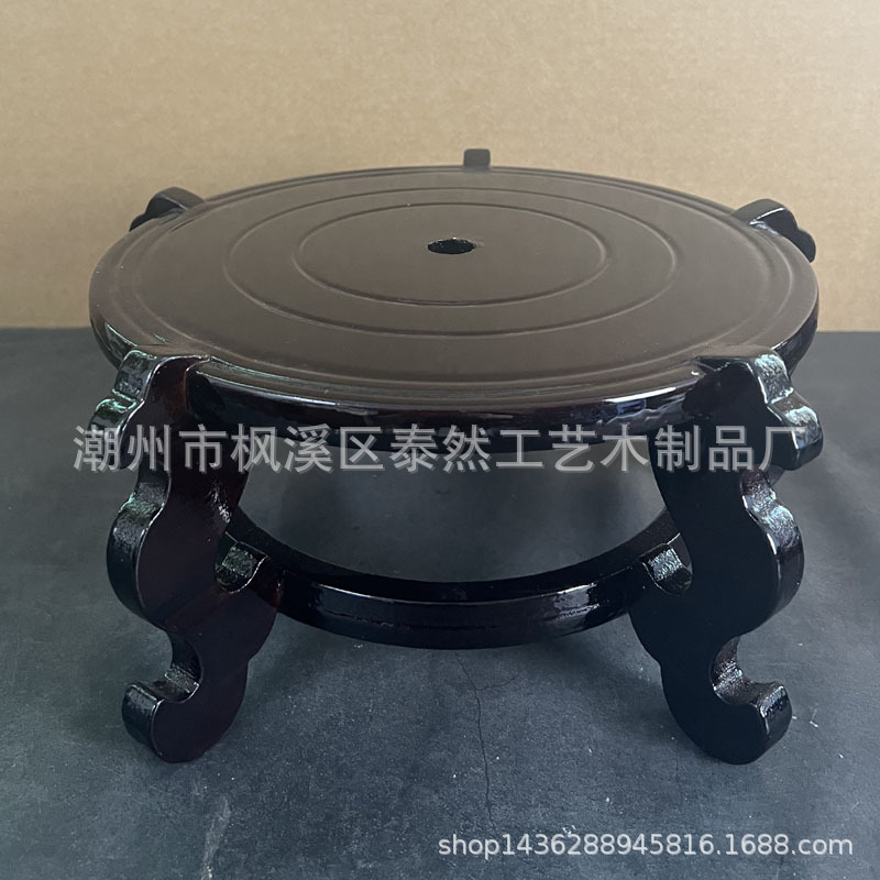 実木置物蓮花円形台座黒梓木奇玉紫砂壺花瓶盆栽仏像観音台座