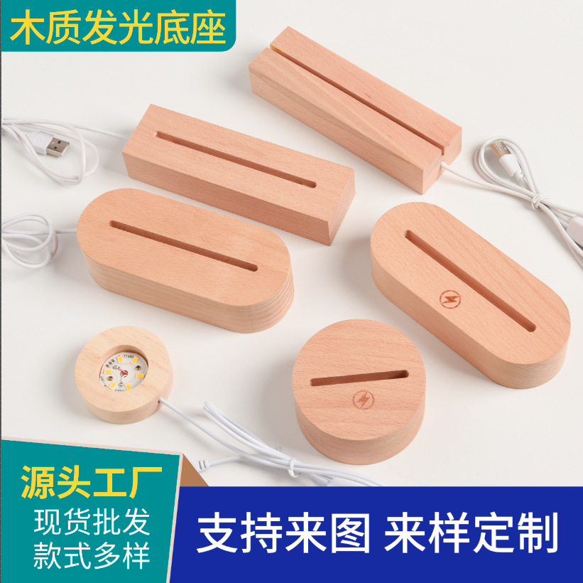 実木発光台座diy小夜灯台座アクリル木製品LEDランプ台座長条形実木置物