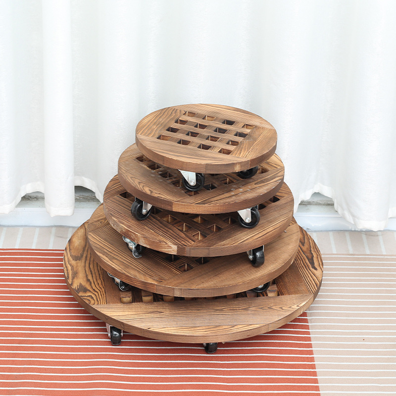 炭素化木造厚さ円形ローラー付き水槽万向輪移動ベース木造植木鉢移動トレイ